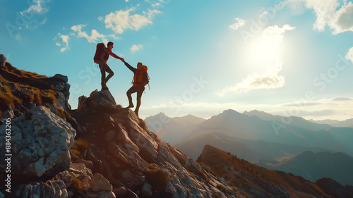 Teamwork in Action - Climbers Assisting on a Steep Climb