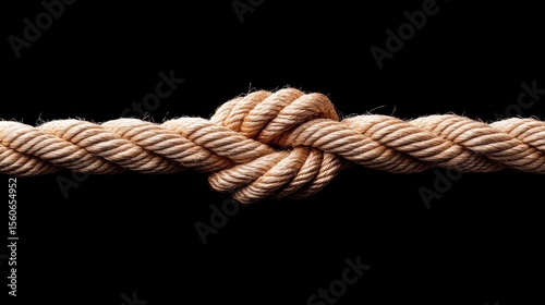 teamwork Rope Knotted Together Close up of a tightly knotted rope, symbolizing strong bonds, unity, and the unbreakable spirit of a team.