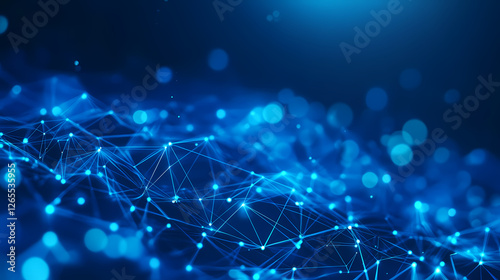 Tech-Inspired Network: Glowing Nodes in a Deep Blue Abstract Design