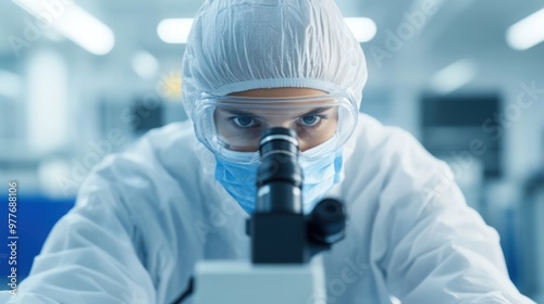 Technician using a digital microscope to check for imperfections in a manufactured product, high-resolution inspection, tech-enhanced QC