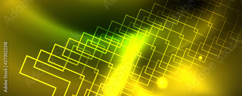 Techno glowing background, futuristic dark template with neon light effects and simple forms, vector