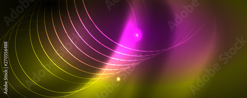 Techno glowing background, futuristic dark template with neon light effects and simple forms, vector