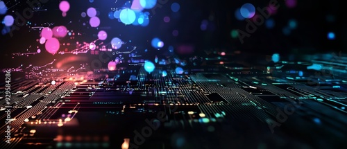 Techno grid with futuristic circuit designs and luminous highlights, background, Generative AI