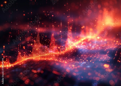 Technological Background: Lights, Beams, Code, Line Charts, and More