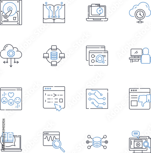 Technological gear line icons collection. Gadgets, Smartwatch, Earbuds, Drs, Robotics, Virtual, Augmented vector and linear illustration. Reality,Wireless,Bluetooth outline signs set