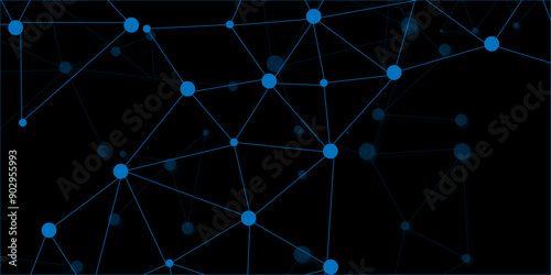 Technology abstract black digital background of connected dot with irregular stock lines. Network Connecting dot polygon background. Concept of Networking technology and futuristic style.