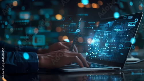 Technology, Ai, cyber internet network and security, business, digital, website, computers in the future. illustration wallpaper background.