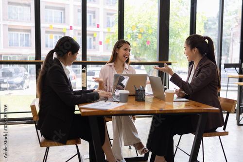 Technology and financial advisory services concept. Businesswoman teamwork and working on digital laptop computer with advisor showing plan of investment to clients at table office. Digital marketing.