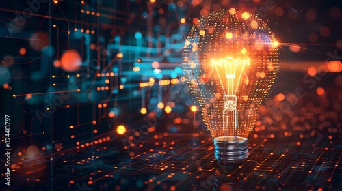 Technology and Innovation: A 3D vector illustration of a lightbulb emitting digital information