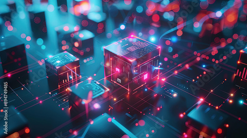 Technology background. Abstract and futuristic depiction of a digital technology network connection in a big. Abstract digital background with glowing network connections and blocks. AI