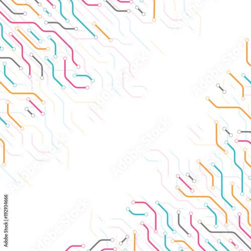 Technology background from colored lines connections for your presentation slide. Abstract information connectivity background. IT-development conception. Neural structure. Vector illustration