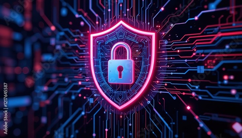 Technology cyber security shield vector illustration. Concept of internet privacy, cyber protection and antivirus. Shield lock in futuristic style, hd image