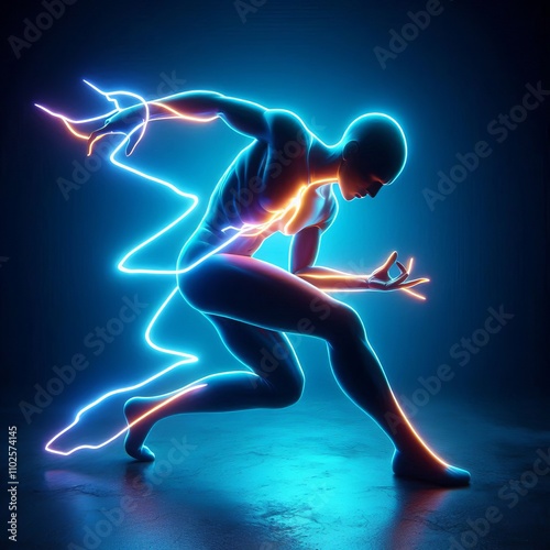 Technology, future and modernism. A person figure with strikes a dramatic pose.