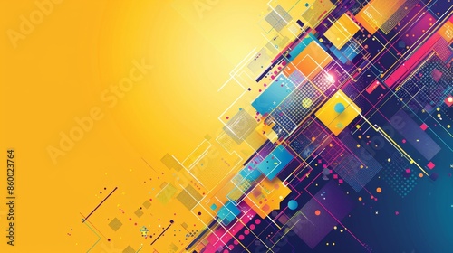 technology mostly Yellow space with colourful graphics around the edge, blue and purple hues