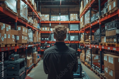 Technology-Driven Logistics: Warehouse Engineer Utilizing PC and Scanner for Efficiency