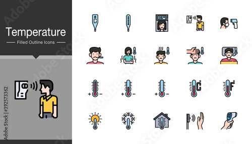 Temperature icons. Filled outline design. For presentation, graphic design, mobile application or UI.