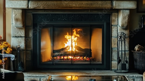 Tempered glass for fireplace doors, showcasing a fireplace with clear, heat-resistant tempered glass doors, ensuring safety and durability in high-temperature environments