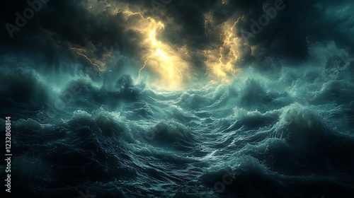 Tempestuous ocean storm, lightning, dramatic sky, game background