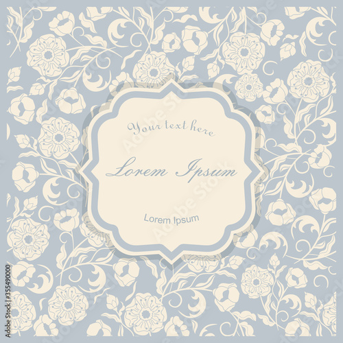 Template greeting cards, invitations and advertising banners, brochures with space for text. Vintage Invitation or wedding card with floral pattern in provence style and vintage frame