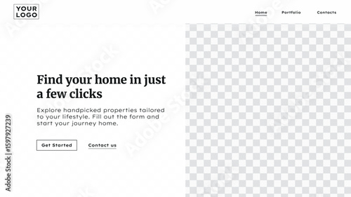 Template of Real Estate Website Landing Page Design with Property Listings and Modern One Page Layout in Editable Vector