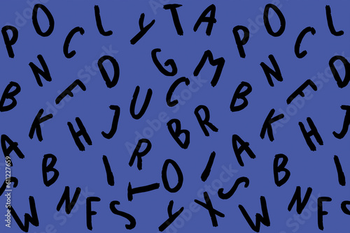 template with the image of keyboard symbols. set of letters. Surface template. purple blue background. Horizontal image.
