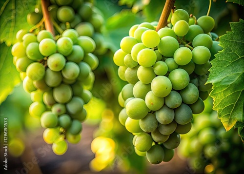 Tempting clusters of lush, green grapes, ripe and juicy, perfect for immediate consumption. High-resolution stock photo.