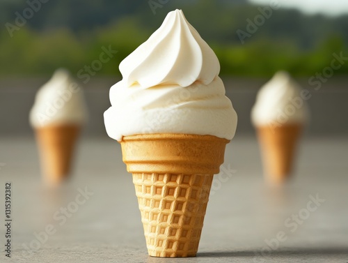Tempting cone of ice cream richly topped with flavorful scoops for a deliciously sweet experience on a warm day