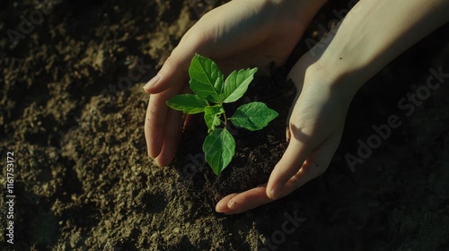 Tender Hands Protecting a New Life: A Seedling in the Earth
