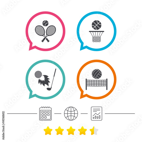 Tennis rackets with ball. Basketball basket.