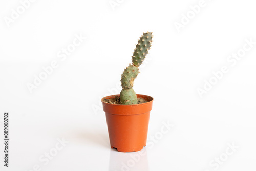 Tephrocactus articulatus Opuntioideae spruce cone cactus isolated on white background with copy space