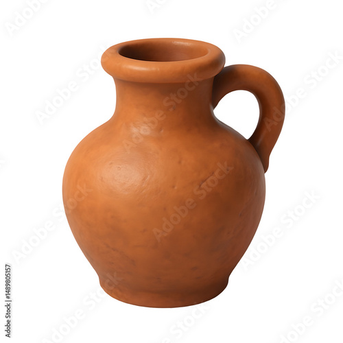 Terracotta jug, rustic charm. Handcrafted pottery. 3D plastic style icon. Isolated on transparent or white background