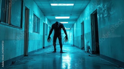 Terror in the Turquoise Corridor: A Monstrous Figure Lurks in a Deserted Hospital