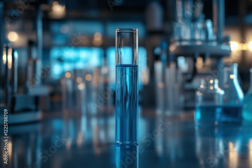 Test tube with glowing blue liquid in a laboratory environment, symbolizing advanced research, biotechnology, and scientific experimentation in modern healthcare