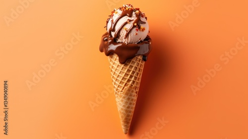 testy chocolate ice cream cone isolated on orange background