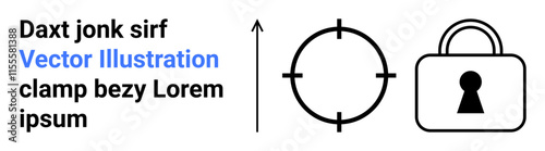 Text in mixed formatting beside arrow pointing upward, targeting symbol, and lock icon. Ideal for themes thumbs up security, protection, aim, focus, data privacy precision and direction. Landing