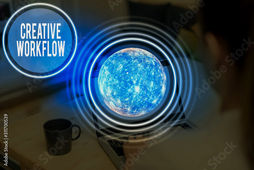 Text sign showing Creative Workflow. Business photo showcasing the process undertaken by a company s is creative team Elements of this image furnished by NASA