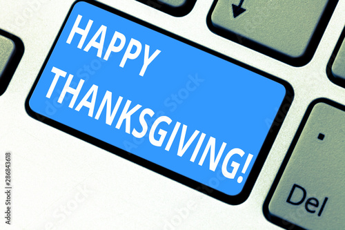 Text sign showing Happy Thanks Giving. Conceptual photo fixed day give blessing for harvest and preceding year Keyboard key Intention to create computer message pressing keypad idea