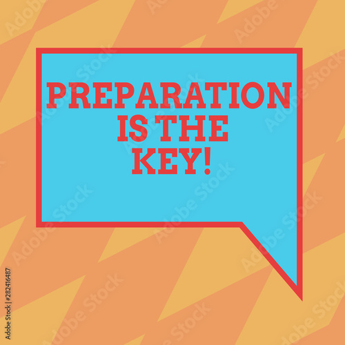Text sign showing Preparation Is The Key. Conceptual photo Learn Study Prepare yourself for achieving success Blank Rectangular Color Speech Bubble with Border photo Right Hand
