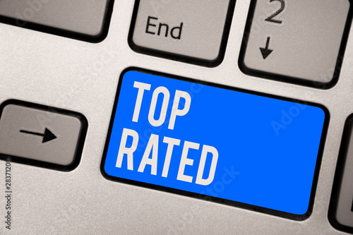 Text sign showing Top Rated. Conceptual photo The high amount of a charge or payment based on calculation Keyboard blue key Intention create computer computing reflection document