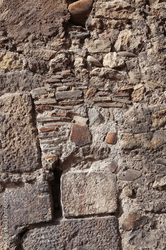 Texture of an old wall of stones and bricks