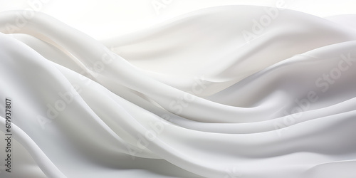 Texture of white silk fine fabric with different folds. Texture of tulle, white wedding fabric. Generative AI.