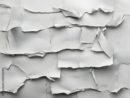 Textured Background of Torn White Paper Layers Creating Depth and Interest for Design Projects