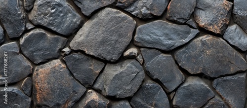 Textured black stone surface with empty space for customization and design elements suitable for backgrounds or product presentations