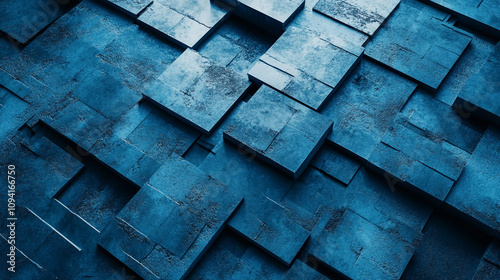 Textured blue surfaces create an abstract geometric pattern in dimensional layers
