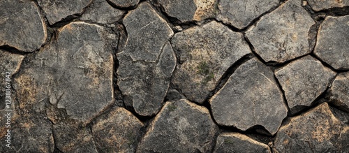 Textured cracked stone surface with earthy tones and detailed patterns suitable for background use Copy Space
