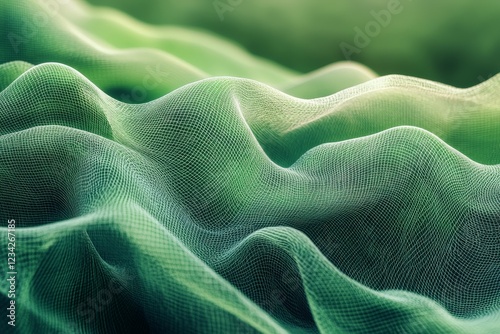 Textured green fabric flowing gently, showcasing soft waves and a serene aesthetic in natural light