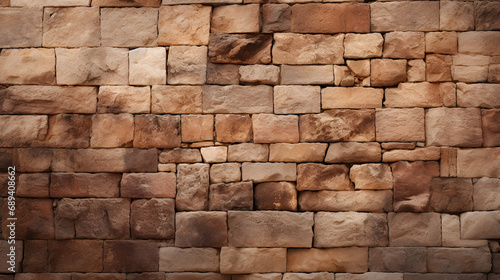 Textured Masonry Wall with Brown Stones in an Irregular Pattern