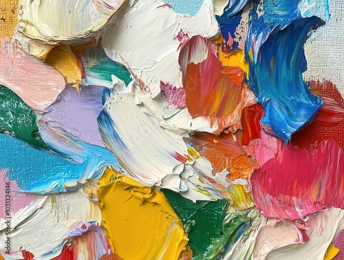 textured oil painting on canvas showcasing a vibrant interplay of multicolored brushstrokes, creating a dynamic and expressive abstract artwork that captivates the viewer