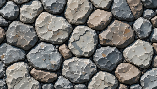 Textured stone wall background with various shapes and colors of rocks