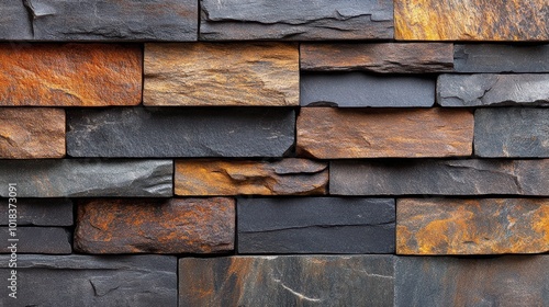 Textured Stone Wall with Interlocking Pattern of Diverse Hues